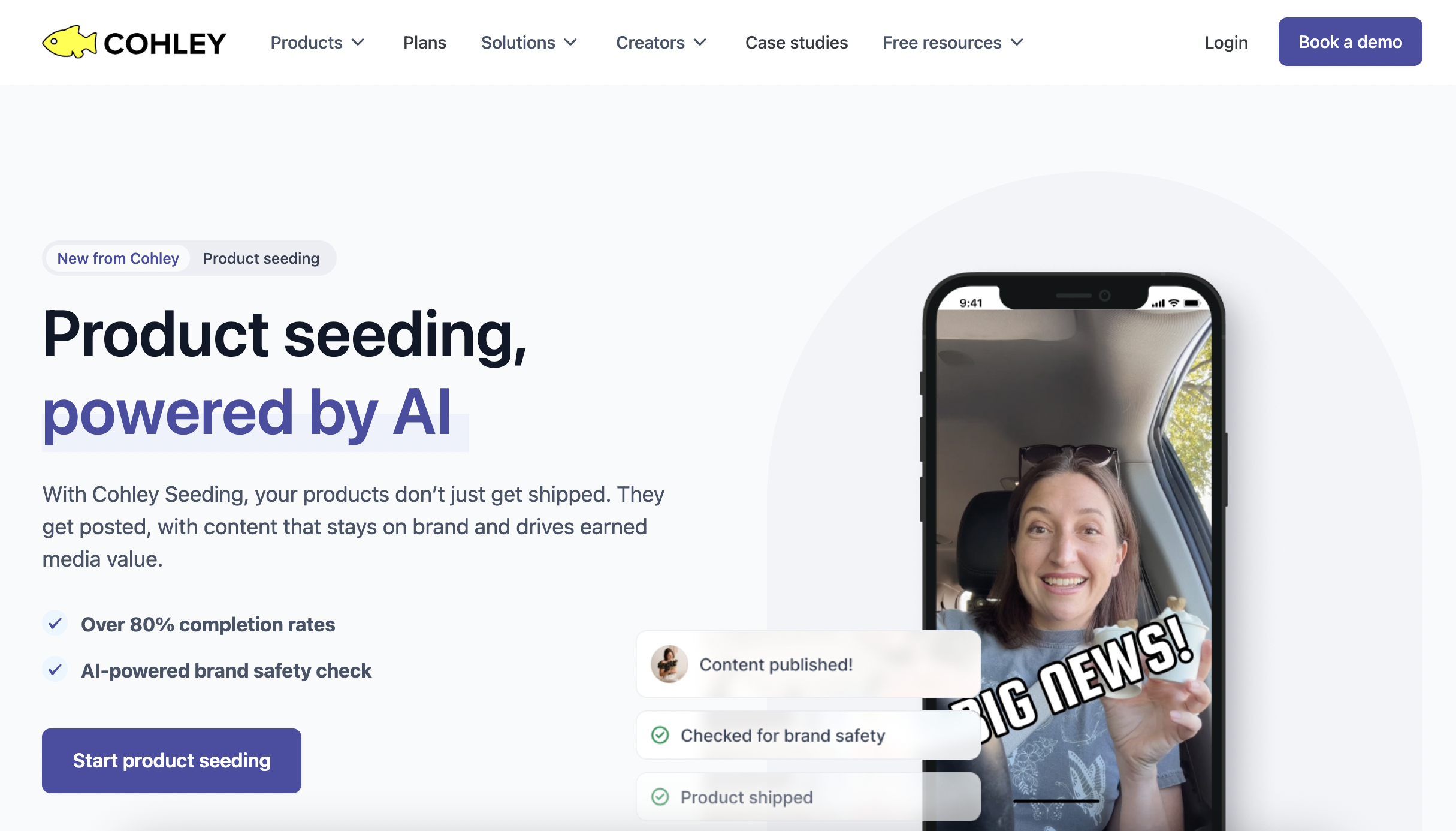 Cohley is an AI-powered product seeding solution that focuses on turning gifted products into on-brand social content instead of wasted samples. The platform helps you hand-select creators with genuine brand affinity using 1,000+ data points, then automates the logistics of shipping through Shopify and drop-shipping integrations. Once products are sent, Cohley tracks completion rates, scans every asset with AI-powered brand safety checks, and ensures that only approved content goes live. With completion rates reported at over 80%—more than double typical industry averages—it gives brands a structured, measurable way to run seeding campaigns that actually result in posts, reviews, and UGC at scale.