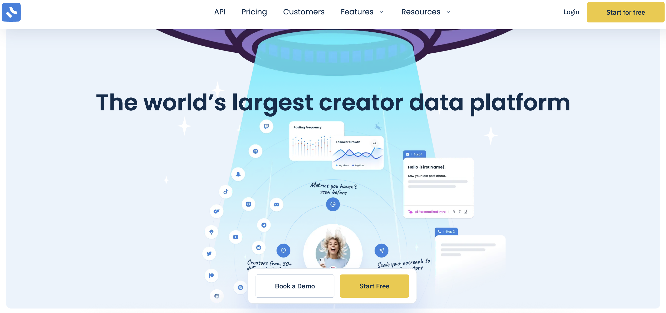 Important Features: AI-based influencer matching, audience similarity detection, free lookalike tools for Instagram, TikTok, and YouTube