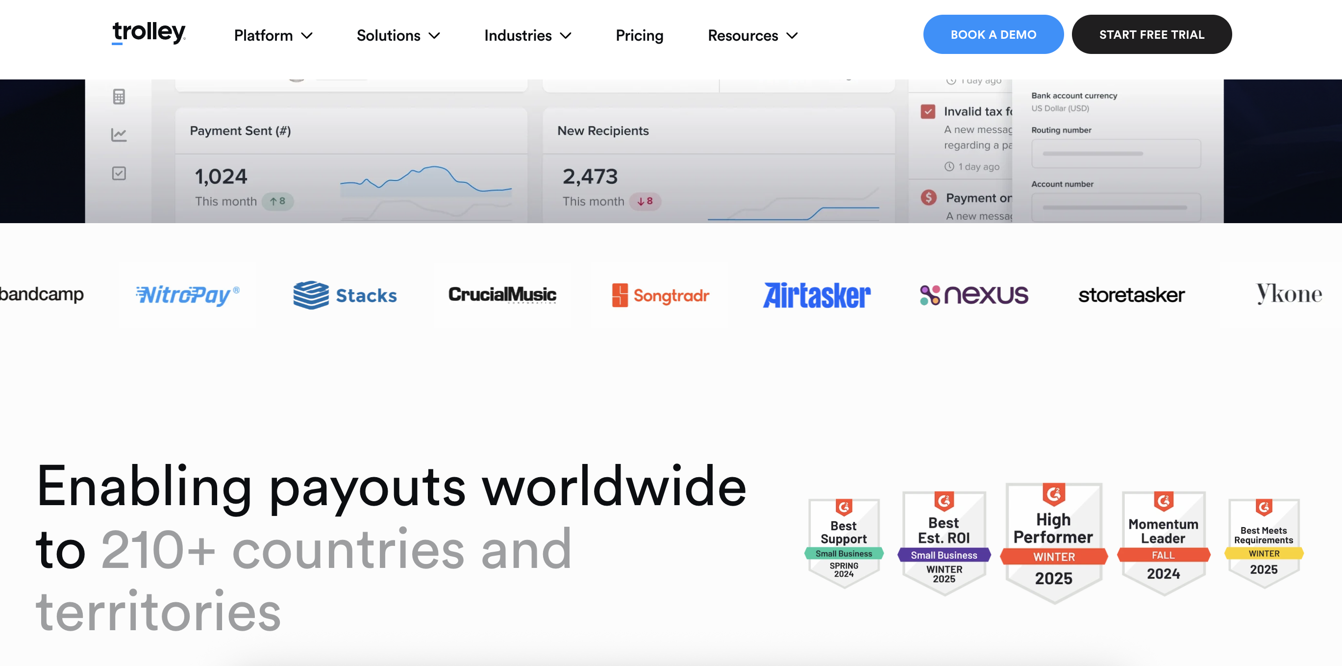 Trolley is a modern payouts platform designed for internet businesses that need to automate cross-border payouts to creators, influencers, and other partners at scale. It lets you securely onboard and verify recipients in 210+ countries and territories, then send direct-to-bank payments, e-wallet transfers, PayPal and other methods in over 130 currencies, while handling KYC, tax data collection, and year-end reporting in the background. Centralized dashboards and APIs give finance and product teams a clear view of payment status, tax forms, and compliance across all creator programs.