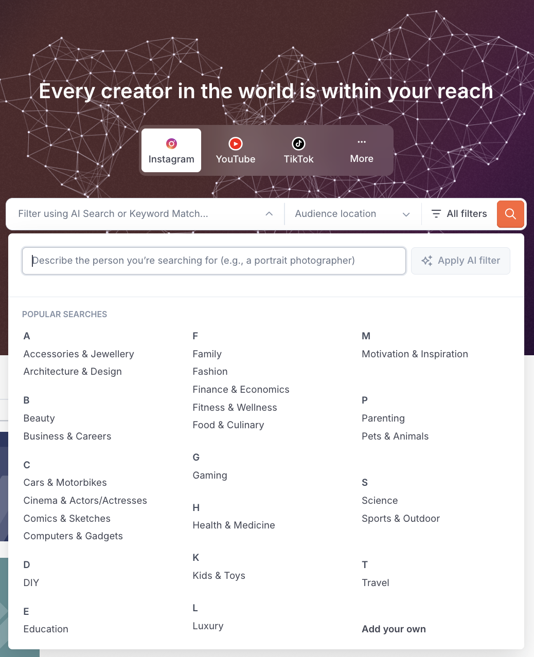 AI can help you define types of creators to look for, which makes searching and filtering easier.