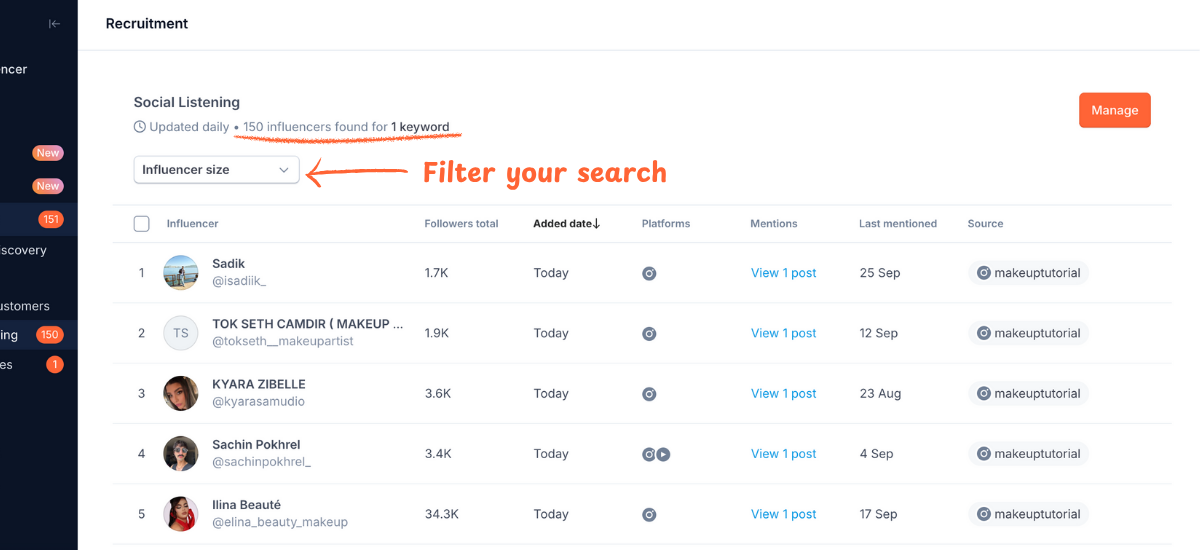 So while dedicated social listening tools center on content discovery, integrated social listening in IM platforms centers on account discovery. Both approaches can help you uncover creators already talking about your niche, your product category, or your competitors.