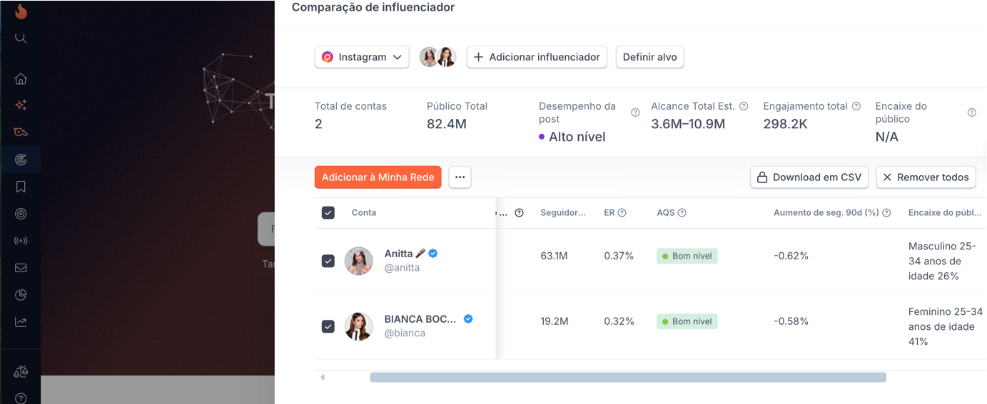 Um dos destaques é a Ferramenta de Comparação de Influenciadores, que permite avaliar vários criadores lado a lado. Assim, os profissionais conseguem comparar taxas de engajamento, autenticidade do público e impacto potencial antes de fechar uma parceria. Além disso, o relatório de Menções à Marca mostra quantas vezes o influenciador já falou sobre uma empresa — incluindo possíveis concorrentes — trazendo transparência total para o processo.