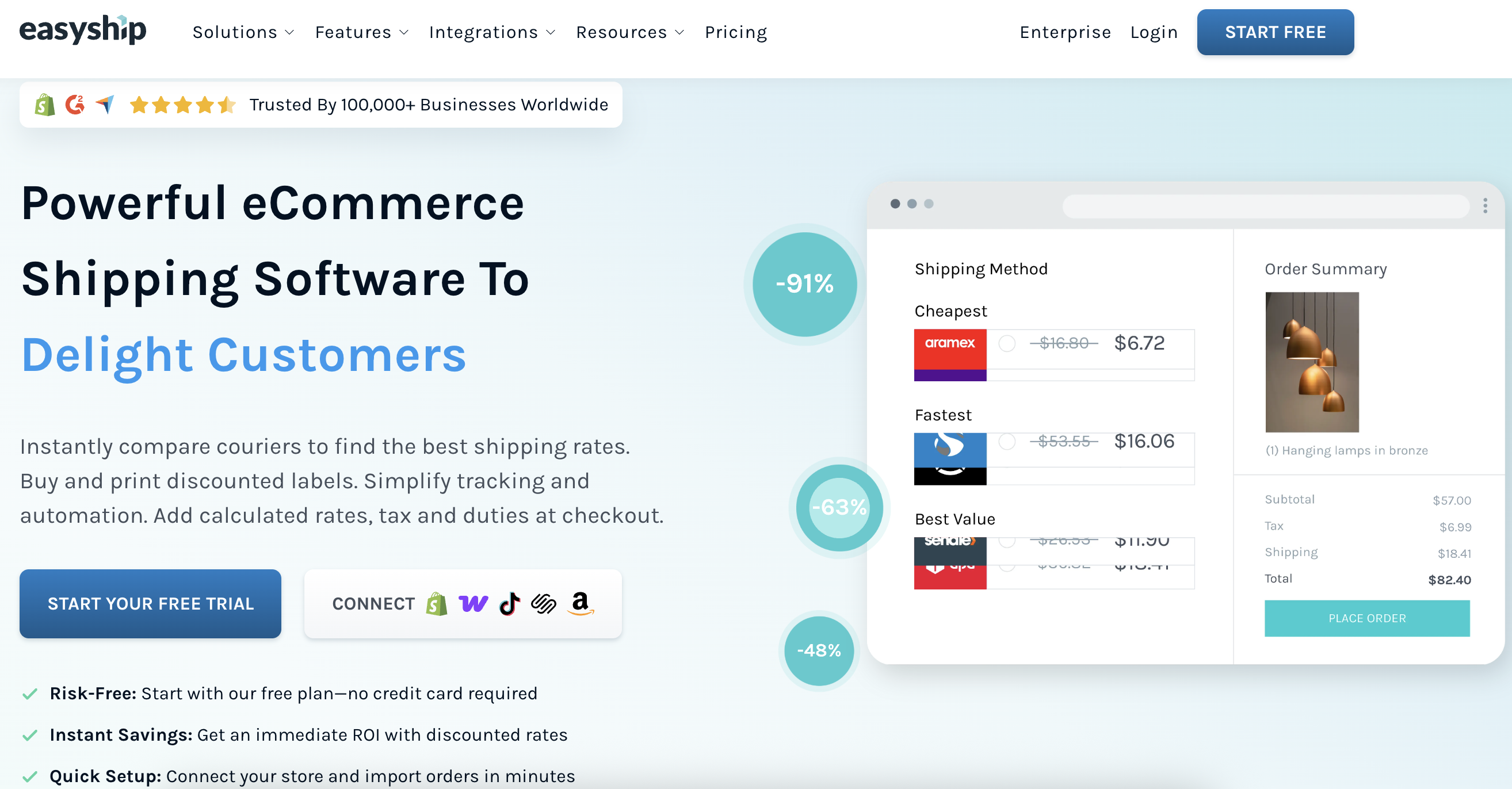 Easyship provides a comprehensive solution for comparing, booking, and tracking shipments. It connects businesses with a network of couriers, allowing them to choose the most cost-effective and efficient shipping options for their needs.