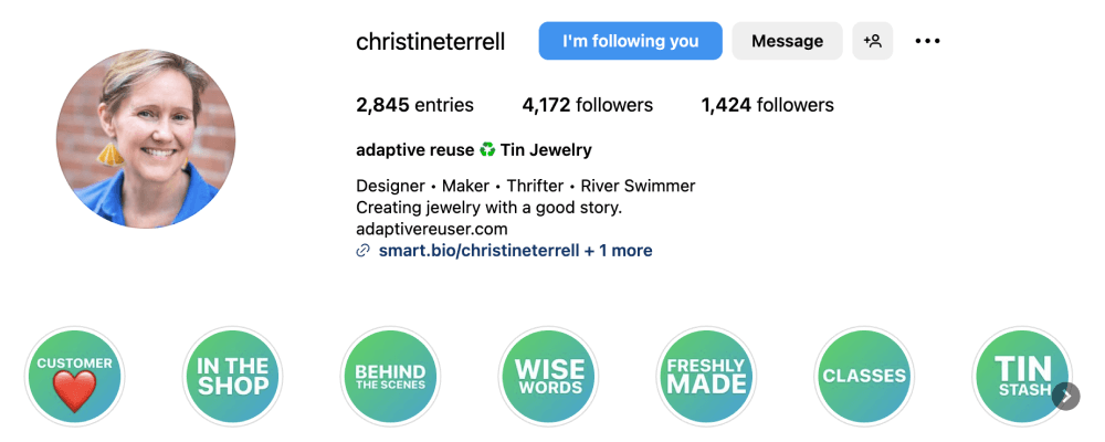 A story usually accompanies the photos she uploads of her designs.Optimize your Instagram profile