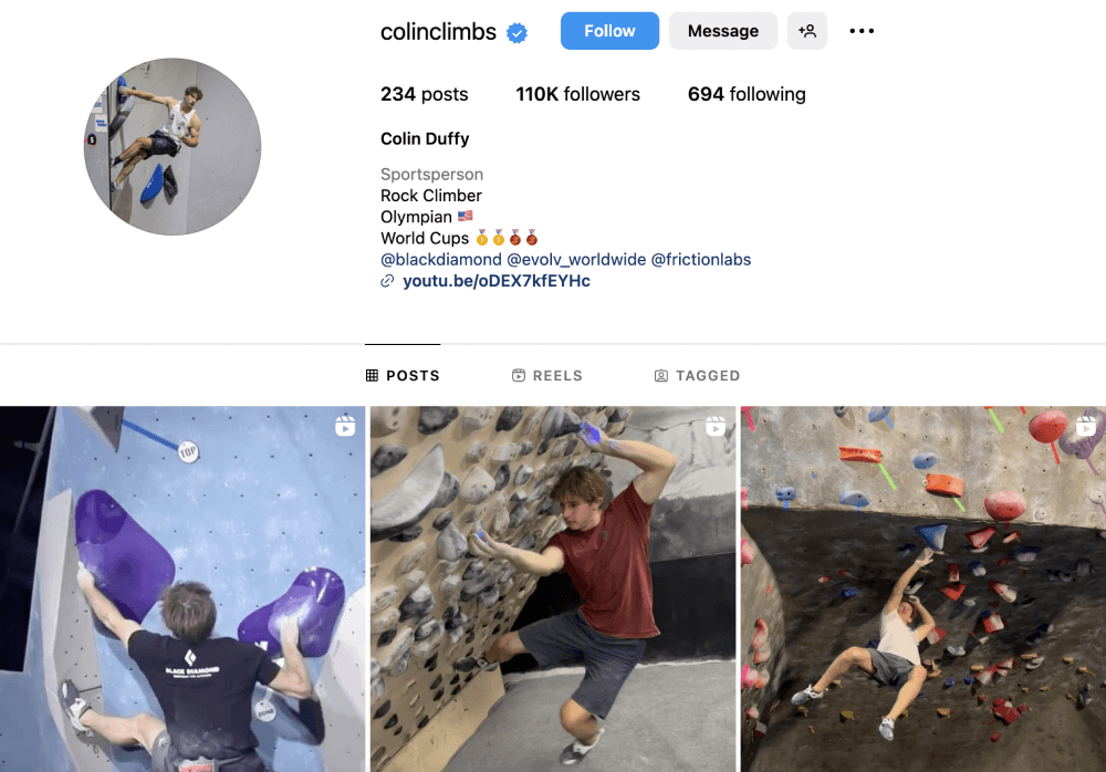 It's all about wall and rock climbing on Colin Duffy's Instagram account.Create high-quality and engaging content
