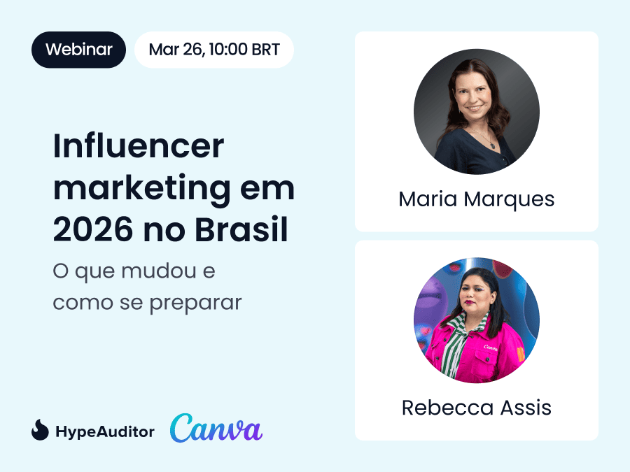 O que mudou no influencer marketing brasileiro em 2026? Webinar gratuito com HypeAuditor e Canva.